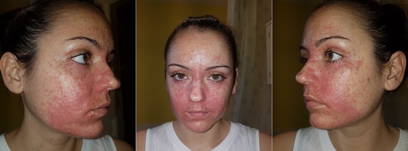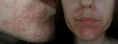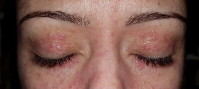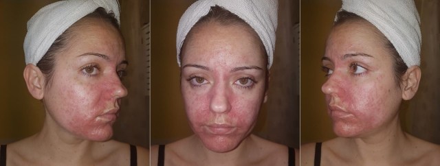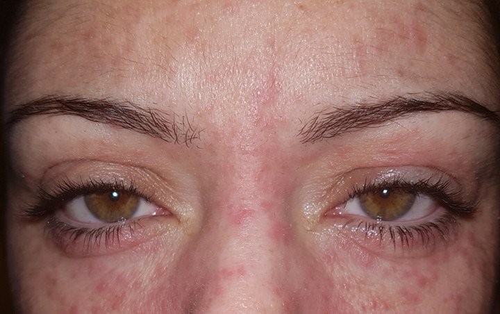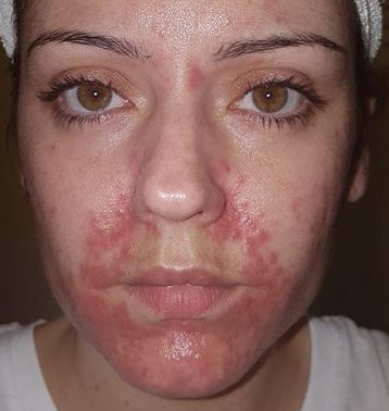The waiting time for a dermatology appointment has tipped me over the edge and all I can do is lay awake and cry with my burning red face. I decide I WILL be going back to the GP, and that will is reinforced when I wake up Monday morning to find it is trailing up my forehead and ALL OVER my cheeks!