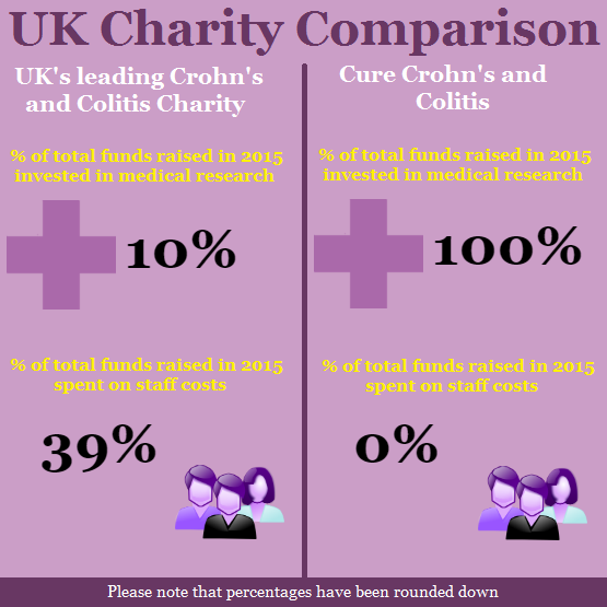 I urge anyone looking to fundraise for Crohn’s Disease and Ulcerative Colitis to PLEASE take some time to think about where your ultimate goal lies and ensure that you are fundraising for a charity which aligns with them.
